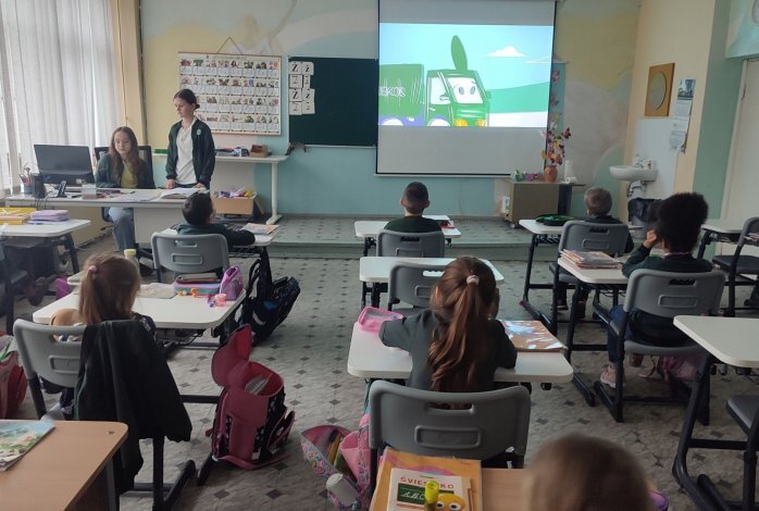 Balandžio 18 d. 6b ir 7a kl. mokiniai O. Seliava, A. Budnikas, A. Čekauskaitė, D...