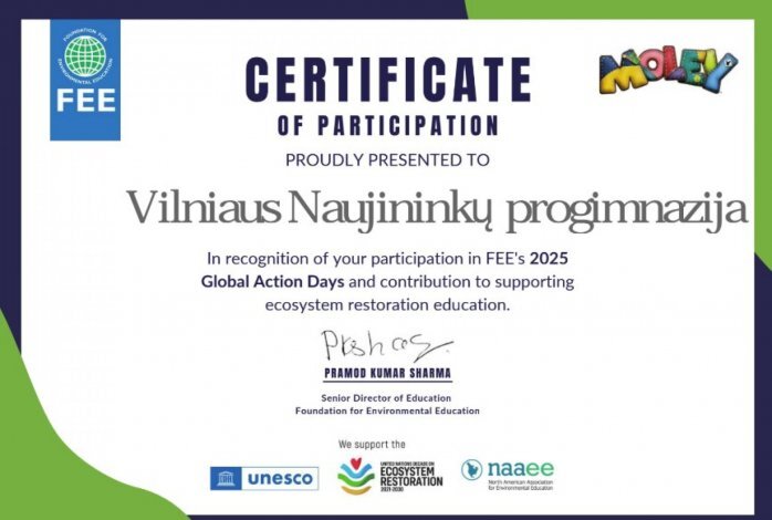 Dalis 5-8 kl. mokinių dalyvavo Globalinių veiksmo dienų 2025 kampanijoje. Veiksmo dienos vyko balandžio 22 d. - gegužės 6 d. Dalyviai vykdė įvairias veiklas.